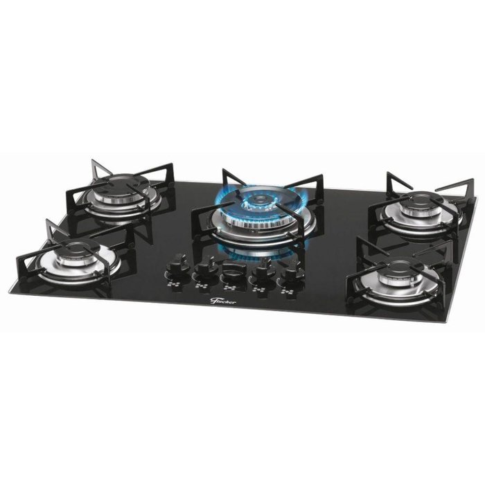 Fogão Cooktop Fischer 5 Bocas Tripla Chama Gás Mesa Vidro Preto Preto
