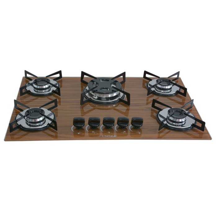 Fogão Cooktop Premium 5 bocas Tripla Chama 139 Amadeirado Escuro Chamalar