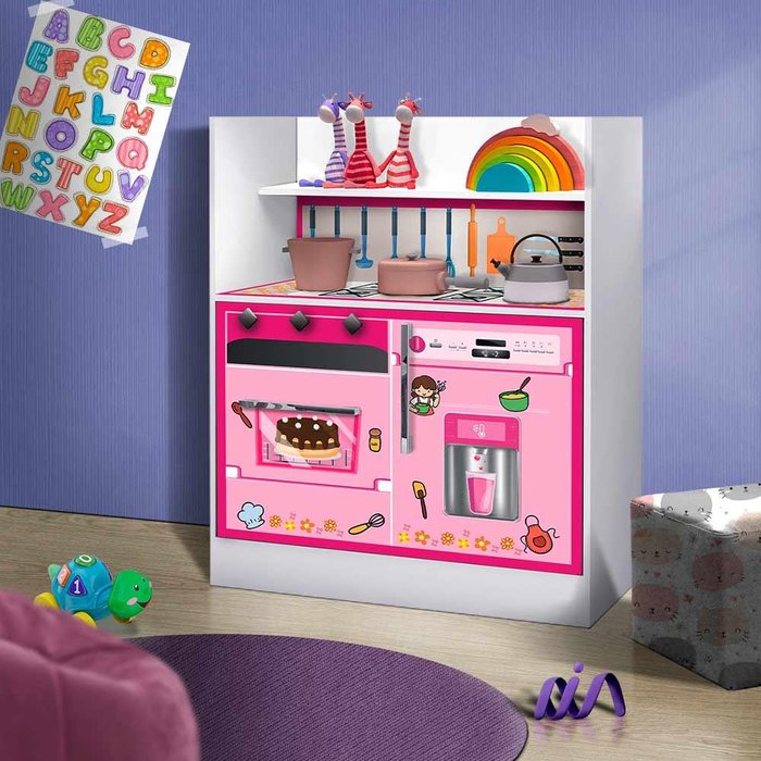 Fogão De Brinquedo Estante MDF Rosa Pink Bunny Shop JM