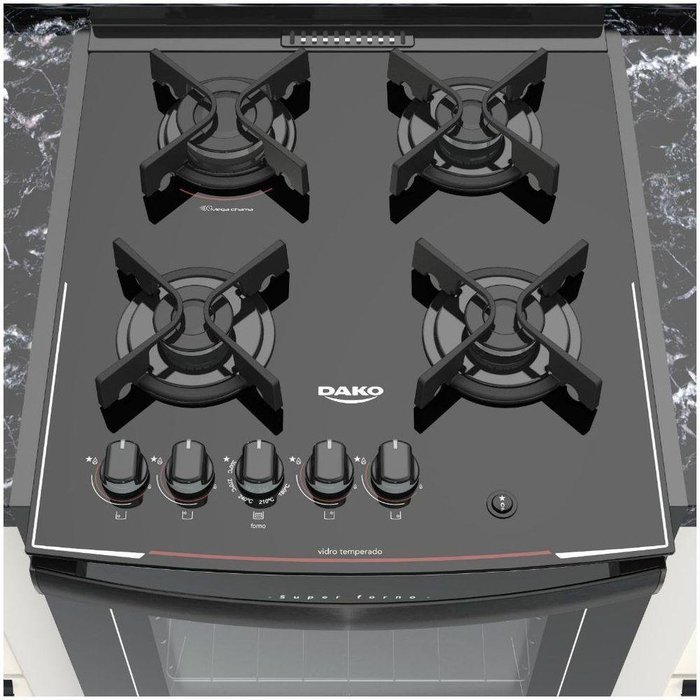 Fogão de Embutir Dako 4 Bocas Glass Mesa de Vidro