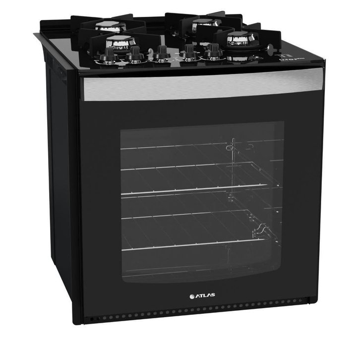 EAN: 7897180508630Marca: Atlas | Cor: Preto | Linha: New U.Top Glass | Quantidade de Queimadores: 4 Bocas | Tipo de Acendimento: Automático | Garantia: 1 ano | Acabamento da Mesa: Vidro Temperado | Instalação: Fogão de Embutir | Funcionamento: Gás | Trempes: Individuais em Ferro Fundido Quadradas 6 pontos de apoio | Grades do Forno: 1 Grade Autodeslizante e 1 Deslizante | Timer Digital: Não | Botões Removíveis: Sim | Fabricação: Nacional | Sistema Corta Gás: Sim | Acabamento Forno: Limpa Fácil | Capacidade do Forno: 82,5L | Luz no Forno: Sim (lâmpada acompanha o produto) | Dimensões Internas do Forno: 45 x 36,5 x 50,5cm (largura x altura x profundidade) | Vidro do Forno: Vidro Duplo | Grill: Não | Largura: 60cm | Altura: 65 | Profundidade: 68,2cm | Potência dos Queimadores: 3Q Semirrápidos de 2,0kW e 1Q Família de 3,0kW | Dimensões do nicho: 57 x 67,80 x 58,60 cm (largura x altura x profundidade) *Veja outras opções de nichos baixando o manual do produto | Quantidade de Bocas: 4 | Alimentação: Energia Elétrica | Selo: Sim | Variação: Não | Tipo de Montagem: de Embutir | Tipo de Instalação: Fogão Embutir