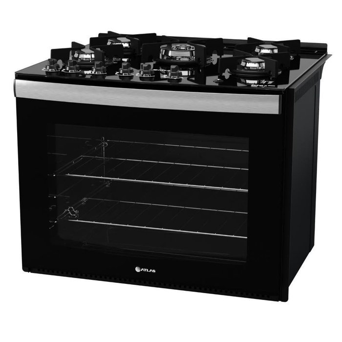 Fogão De Embutir 5 Bocas Preto Com Frente Em Vidro Preto E Mesa De Vidro Atlas U.top Glass Bivolt Com design único e sofisticado com frente full glass preta, o fogão de embutir U.Top Glass Bivolt leva beleza e praticidade para sua cozinha. Sua mesa de vidro temperado com borda infinita e suas grades extras robustas de ferro fundido, garantem uma perfeita acomodação das panelas. Conta também com acendimento automático, botões em 2 cores com indicador de temperatura e trava de segurança, puxador ergonômico em alumínio escovado e colunas da cor das laterais, tudo para facilitar sua vida na hora de cozinhar. O forno é uma atração à parte, é gigante (capacidade de 119,5L), permitindo assar até 4 receitas diferentes ao mesmo tempo, economizando tempo e gás. Além disso, possui acabamento limpa fácil, iluminação interna (lâmpada acompanha o produto), 2 grades deslizantes e porta com vidro duplo - que preserva o calor. ; ;Marca: AtlasVoltagem: BivoltCor: PretoLinha: New U.Top GlassQuantidade de Bocas: 5 BocasTipo de Acendimento: AutomáticoGarantia: 1 anoAcabamento da Mesa: Vidro TemperadoInstalação: Fogão de EmbutirFuncionamento: GásTrempes: Individuais em Ferro Fundido Quadradas 6 pontos de apoioGrades do Forno: 1 Grade Autodeslizante e 1 DeslizanteTimer Digital: NãoBotões Removíveis: SimFabricação: NacionalSistema Corta Gás: SimAcabamento Forno: Limpa FácilCapacidade do Forno: 119,5LLuz no Forno: Sim (lâmpada acompanha o produto)Vidro no Forno: Vidro DuploDimensões Internas do Forno: 65 x 36,5 x 50,5 cm (largura x altura x profundidade)Grill: NãoLargura: 80cmAltura: 65,9cmProfundidade: 68,2cm ;Potência dos Queimadores: 3Q Semirrápidos de 2,0kW, 1Q Família de 3,0kW e 1Q Tripla Chama de 3,3kW.Dimensões do nicho: 77 x 67,8 x 58,6 cm (largura x altura x profundidade) *Veja outras opções de nichos baixando o manual do produto. ;Marca: Atlas | Voltagem: Bivolt | Cor: Preto | Linha: New U.Top Glass | Quantidade de Queimadores: 5 Bocas | Tipo de Acendimento: Automático | Garantia: 1 ano | Acabamento da Mesa: Vidro Temperado | Instalação: Fogão de Embutir | Funcionamento: Gás | Trempes: Individuais em Ferro Fundido Quadradas 6 pontos de apoio | Timer Digital: Não | Botões Removíveis: Sim | Fabricação: Nacional | Sistema Corta Gás: Sim | Grades do Forno: 1 Grade Autodeslizante e 1 Deslizante | Acabamento do Forno: Limpa Fácil | Capacidade do Forno: 119,5L | Luz no Forno: Sim (lâmpada acompanha o produto) | Vidro do Forno: Vidro Duplo | Dimensões Internas do Forno: 65 x 36,5 x 50,5 cm (largura x altura x profundidade) | Grill: Não | Largura: 80cm | Altura: 65,9cm | Profundidade: 68,2cm | Potência dos Queimadores: 3Q Semirrápidos de 2,0kW, 1Q Família de 3,0kW e 1Q Tripla Chama de 3,3kW. | Dimensões do Nicho: 77 x 67,8 x 58,6 cm (largura x altura x profundidade) *Veja outras opções de nichos baixando o manual do produto. | Eficiência Energética: A | Tipo de Montagem: de Embutir | Quantidade de Bocas: 5 | Alimentação: Energia Elétrica | Tipo de Instalação: Embutir | Selo: Sim