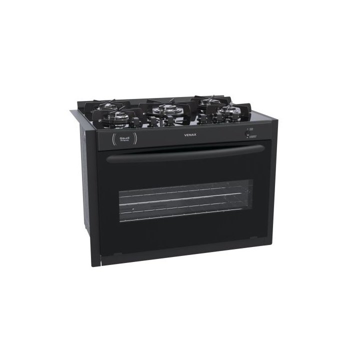Fogao de Embutir 5 Bocas Venax Gaudi Prisma Vitreo Preto Gas Glp