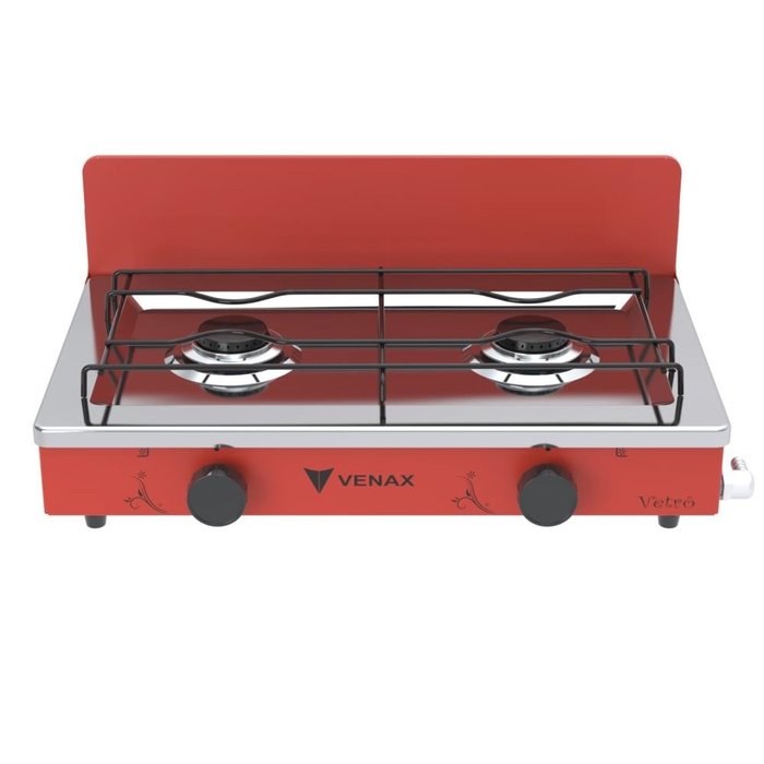 FOGAO DE MESA 2 BOCAS VENAX FLAMALAR VETRO VERMELHO GAS GLP