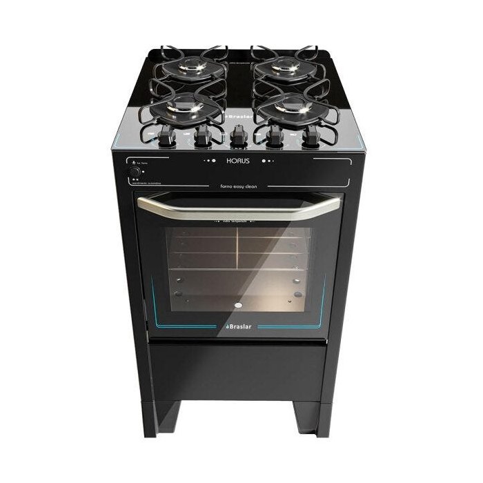 Fogão de Piso 4 Bocas Mesa de Vidro com Acendimento Total Horus Top Control Preto - Braslar