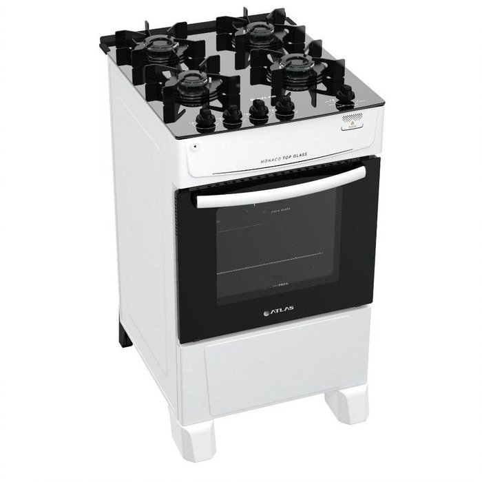 Fogão De Piso Atlas 4 Bocas Monaco Acendimento Automático Top Glass Branco Bvolt