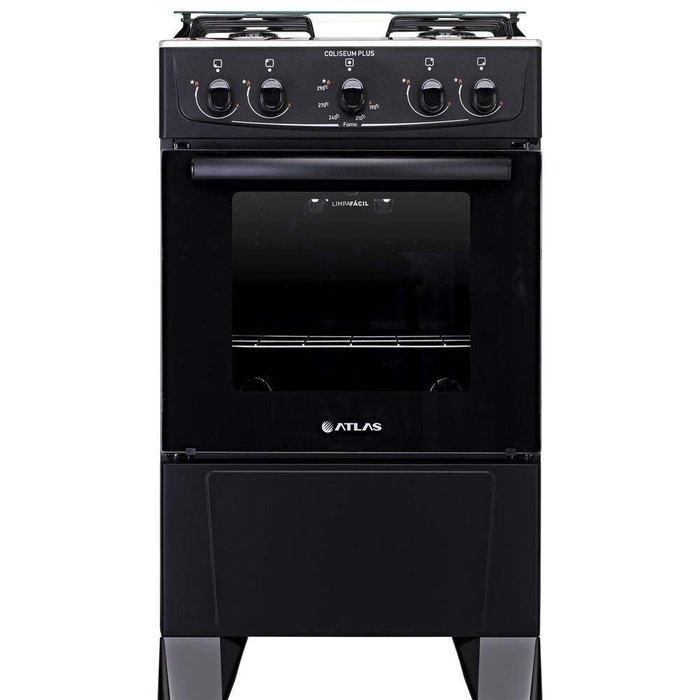 Fogão de Piso Atlas Coliseum Plus 4 Bocas Preto Bivolt Com o fogão Coliseum você pode preparar suas receitas com a certeza que ele não vai te abandonar. O forno Limpa Fácil é a chave para economizar tempo com a limpeza. Este produto ainda conta com: