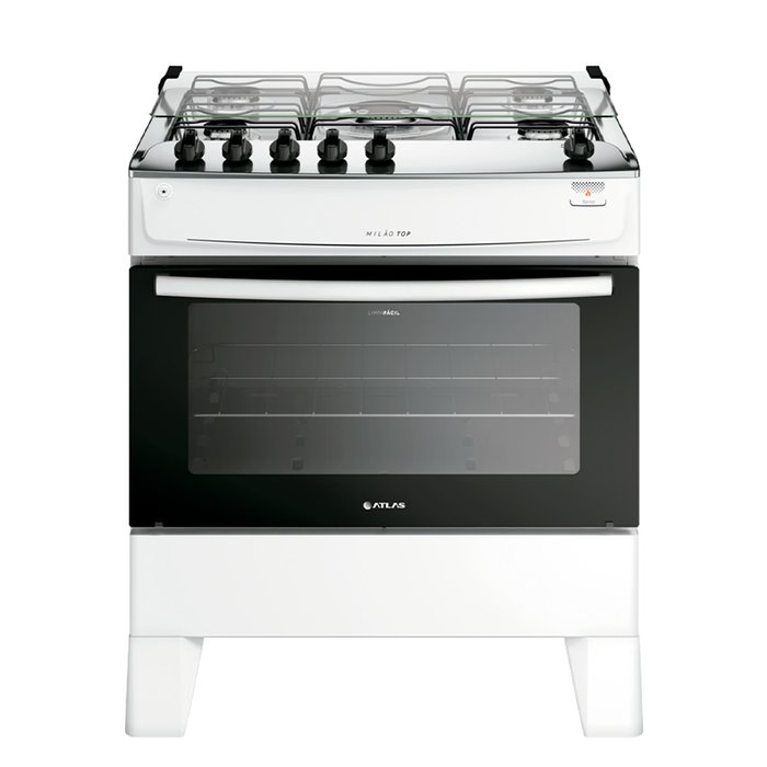 Fogão de Piso Atlas Milão Top 5 Bocas com Mesa Inox Branco