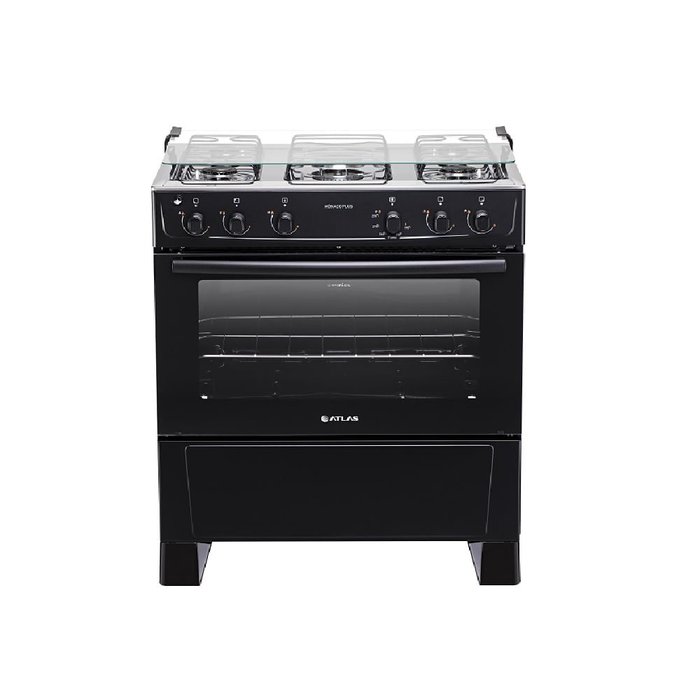 O Fogão De Piso Atlas Monaco Plus 5 Bocas Preto - Bivolt possui mesa em inox, tampa de vidro na mesa, grades duplas de aço esmaltado, acendimento automático e botões removíveis que facilita na hora da limpeza.