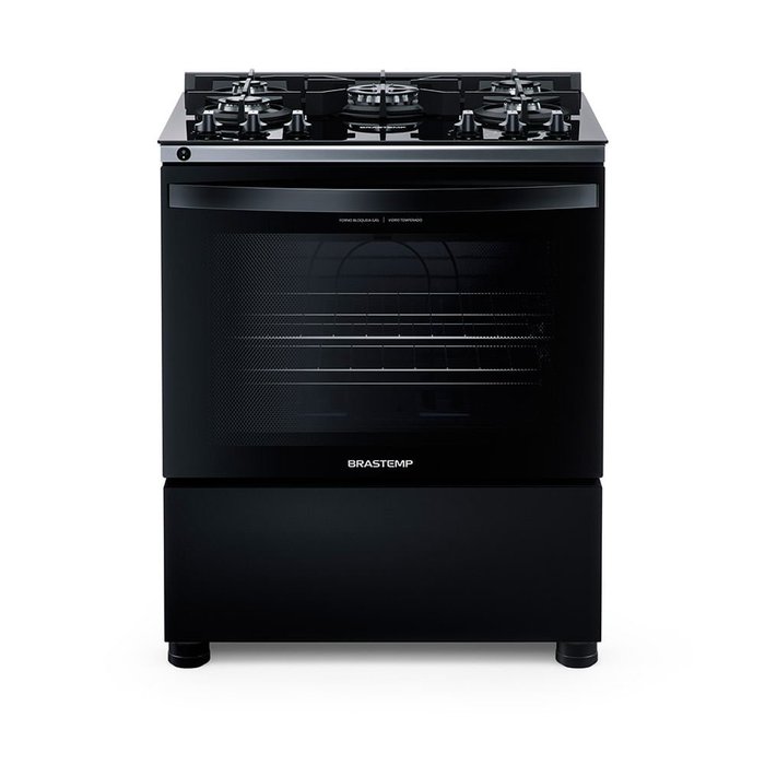 Fogão de Piso Brastemp 5 Bocas com Mesa de Vidro e Turbo Chama Preto BFS5VCE – Bivolt