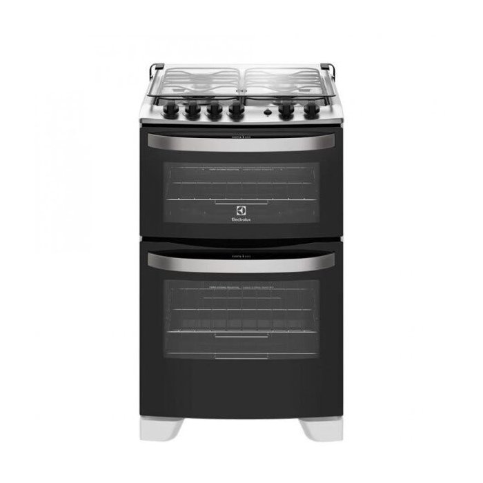 O fogão 56DBA Electrolux é um produto além de tudo o que você já conheceu em termos de cozimento e preparo de refeições. Tem forno superior a gás de 38,8 litros, e forno a gás inferior de 67,7 litros para preparar outras receitas. Esse fogão Electrolux veio para atender pessoas exigentes, que desejam mais rapidez e requinte em suas opções gastronômicas. O sistema bloqueia gás corta a chama do forno caso a chama se apague, evitando acidentes.