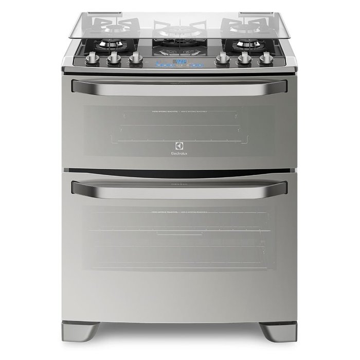 Fogão de Piso Electrolux 5 Bocas Mesa de Vidro Duplo Forno e Grill Prata 76dxv – 127 Volts