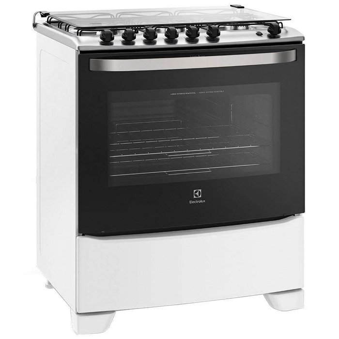 Fogão de Piso Electrolux 6 Bocas Full Glass 76Bs Branco Bivolt