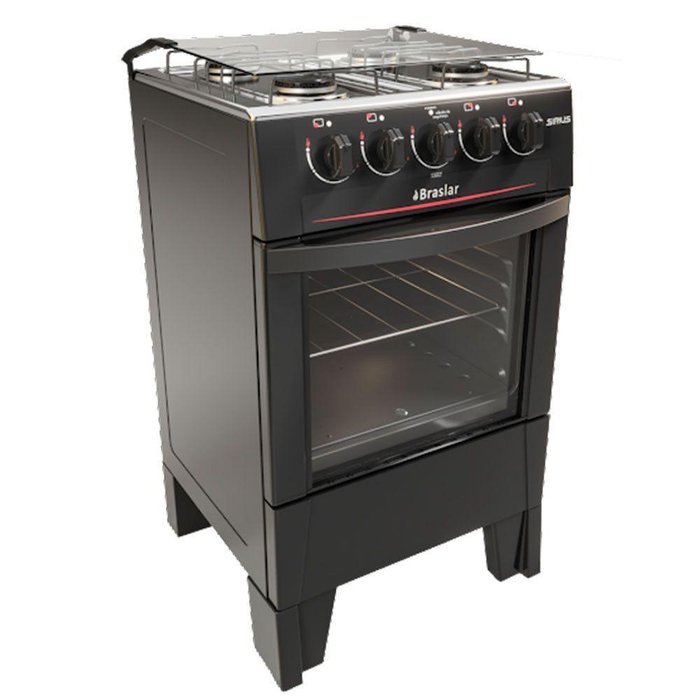 Fogão de Piso Sirius 4 Bocas Forno Easy Clean Braslar Preto Preto