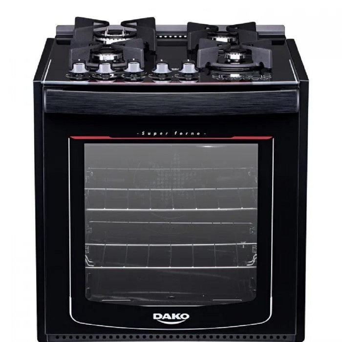 Com um toque no Display Digital, você controla o tempo de desligamento do forno e do grill. O forno, aliás, é um show à parte. Com a tecnologia Turbo Convecção, prepara duas receitas ao mesmo tempo, sem interferência de sabores e aromas, além de ter um ótimo espaço, com capacidade de 82,5L. A mesa de vidro temperado e os botões com acendimento superautomático (basta girar o botão para acender), tornam sua rotina na cozinha mais prática. O Dako Turbo Glass é um fogão moderno e completo, feito para facilitar seu dia a dia.