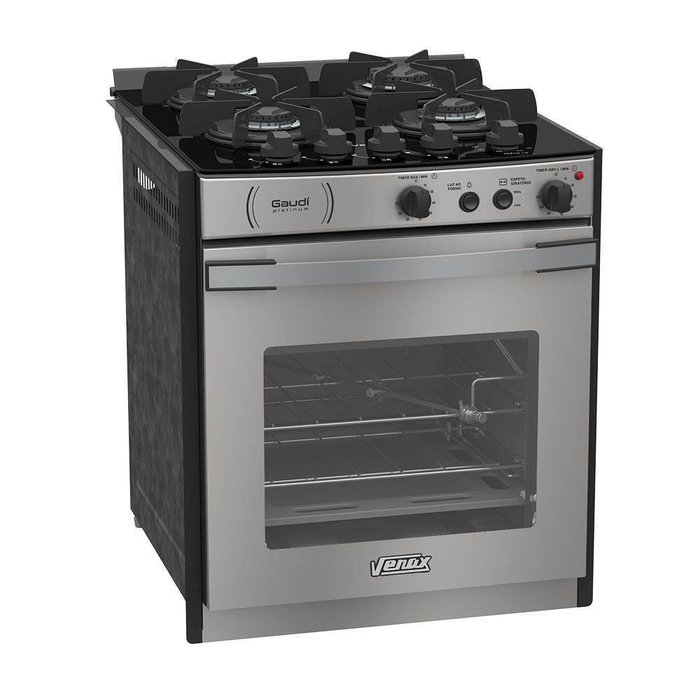 Fogão Embutir Gás Natural Venax Gaudi Platinum Vítreo 4 Bocas Inox
