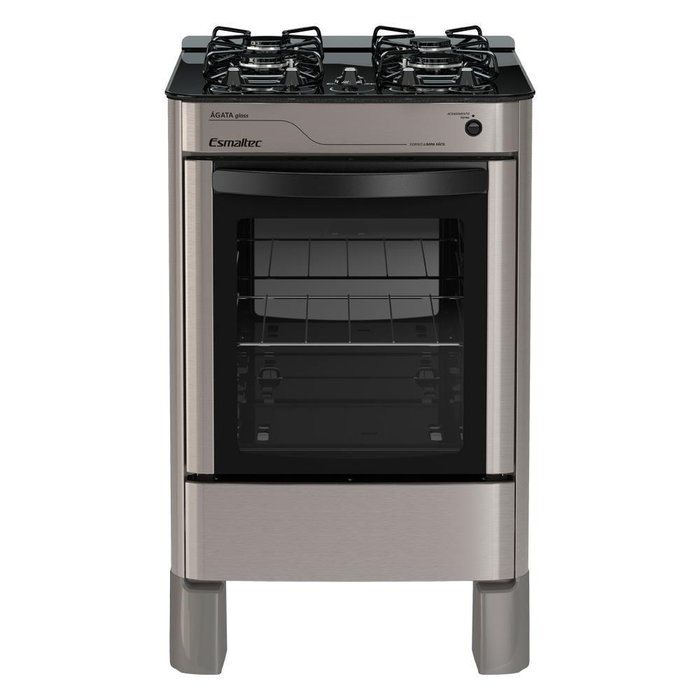 Fogão Esmaltec ágata Glass 4 Bocas Inox Forno Limpa Fácil E Acendimento Automático