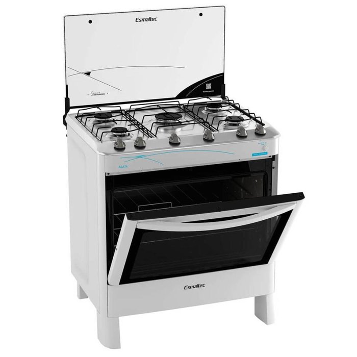 Suas refeições podem ser preparadas com agilidade no Fogão Esmaltec Ágata. Ele conta com cinco queimadores e forno 95 litros com revestimento que impede o acumulo de gordura e facilita a limpeza. Possui vidro amplo e grade fixa para você acomodar diferentes tamanhos de alimentos e assadeiras. Sua mesa possui acabamento resistente, botões removíveis e queimadores de alto desempenho para garantir mais agilidade na hora de preparar seus alimentos.Características Gerais- Top Control: Segurança e comodidade ao dia a dia- Queimador Super Chama: Potência e agilidade no preparo dos pratos- Forno limpa fácil: Facilidade na hora de limpar- Puxador de aço: Super-reforçado para mais segurança- Botões removíveis: Facilita a limpeza do produto- Pés altos: Robustos e facilitam a limpeza- Certificação energética: Mesa A / Forno ADIMENSÕESFogão Esmaltec 5 Bocas Ágata 5062 - BrancoAltura86,30 CentimetrosLargura76,70 CentimetrosProfundidade59,80 CentimetrosPeso26,40 Quilos