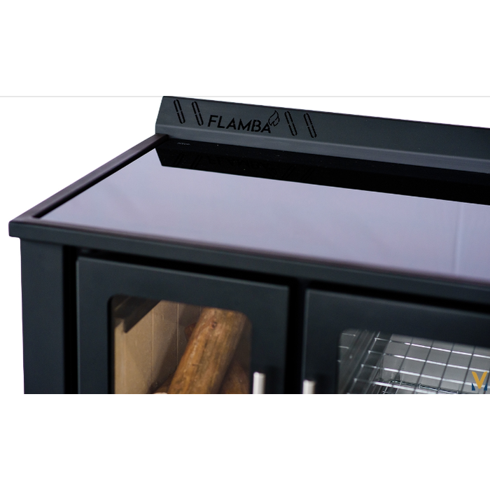 Aquecer a casa e cozinhar nunca foi tão prazeroso. O fogão gourmet P18 2 em 1 da linha Flamba possui chapa de cozimento de vitrocerâmico na parte superior, onde é possível preparar o alimento diretamente no vidro com segurança, resistência e ótima condutividade térmica e um forno para assamento com 2 grelhas internas e termômetro. Laterais disponíveis nas cores vermelho e preto.