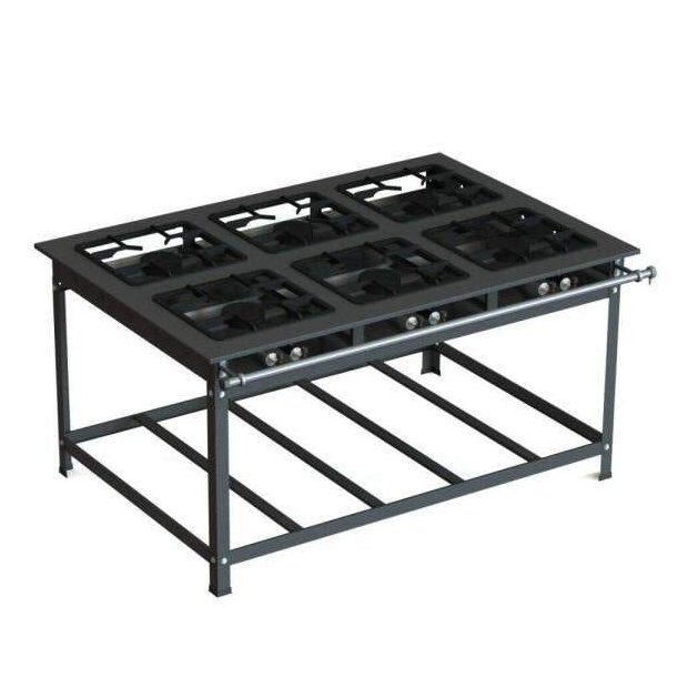Fogão Industrial 40x40 P10 6 Bocas Alta Pressão - JL ColomboO Fogão Industrial 6 Bocas JL Colombo é Ideal para estabelecimentos que possuem cozinha industrial como lanchonetes, restaurantes, hotéis e todos outros que necessitem de uma solução econômica no cozimento de refeições diárias, além da sua praticidade, e é utilizado também em Sitíos e Fazendas.O Fogão Industrial 6 bocas, Alta pressão, Possui material em aço carbono com pintura epóxi, grelha 40x40 sendo ela e o queimador em ferro fundido e mesa perfil 10Conheça o Fogão IndustrialEspecificaçõesMaterial: Aço CarbonoBandeja coletora: Aço MinimizadoGrelhas: Ferro Fundido 40x40cmTubo de Alimentação: 1Acendimento: ManualAlimentação: Gás GLPUtilizar Registro Alta Pressão: NXF 1/8 x 1/8 NPTQueimadores: 6 Queimadores SimplesPés: SimSapatas: BorrachaCor: Preto TexturizadoPerfil 10Medidas