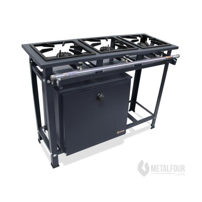 O Fogão Industrial de 3 Bocas COM FORNO 30x30 de Baixa Pressão com 1 Queimador Simples e 2 Queimadores Duplos Pés - Linha LUX - P7 - Possui uma estrutura sólida de alta qualidade, resistência e durabilidade. Indicado para frituras e cozimentos em geral, garantindo economia de gás devido a sua agilidade e potência das chamas ajustáveis; Baixa Pressão: é um modelo que utiliza válvulas de gás semelhantes às dos fogões domésticos, o gás sai do botijão, passa por um regulador (registro) e então é liberado para o fogão. Para esta linha de fogões também se faz necessário a válvula de 2 ou 5kg/H de pressão, encontrada em Supermercados ou revendedoras de Gás ( Igual válvula reguladora de fogão residencial ) O material é feito de Aço Carbono, revestido com pintura Epox (Pintura eletrostática, na cor cinza grafite), com uma grelha de ferro fundido de 30x30 e um queimador simples ao centro. Registro regulador de gás, confeccionado em latão duro niquelado e cromado; Queimadores fundidos em ferro á altas temperaturas; Tubo distribuidor (coletor) de gás de 7/8” zincado, confeccionado em liga especial de grande durabilidade; Quadro em chapa de aço carbono todo soldado (MIG) e pontiado; Bandejas de resíduos em aço galvanizado que evita corrosão; Pés de aço carbono desmontáveis e sapatilhas de borracha antiderrapante; O sistema de acendimento funciona de forma manual, de uso prático, rápido e econômico. FORNO em AÇO CARBONO com capacidade de 66 Litros, Tamanho Pequeno (Ideal para fogões de 2 e 3 Bocas) para Registro de Baixa Pressão, com Altura de 48 cm, Largura de 62 cm e Profundidade de 42 cm. Especificações: Uso: Comercial/Industrial Queimadores: 1 Queimador simples e 2 Queimadores duplos distribuídos uniformemente; Modelo: Baixa Pressão; Mesa: Perfil 50 mm (P5) ; Grelha: Grelhas quadradas (30cm x 30cm) fundidos em ferro à altas temperatura, atingindo alto padrão de dureza; Largura: 43 cm; Altura: 80 cm; Profundidade: 115 cm; Corpo: Aço Carbono; Pintura: Epox (Grafite) ; Queimador Simples: 130 mm; Queimador Duplo: 140 mm; Consumo: 300 gr/hora; Acessório: Registro de Baixa Pressão ( Não incluso) ; Peso Líquido: 53,89kg;
