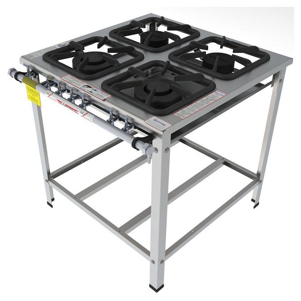 Fogão Industrial Inox Gastromaq 4 Bocas Encosto Mista FGI304EM Ideal para Cozinhas Industriais que precisam de um Fogão Inox Robusto e de qualidade, o Fogão Gastromaq é fabricado com mesa de perfil 70 mm estampada e sem emendas. Sua estrutura em aço inox, tubulação em alumínio escovado, queimadores em ferro fundido e grelha de 30X30 cm com 6 braços garante robustez sendo o equipamento ideal para a sua cozinha industrial!