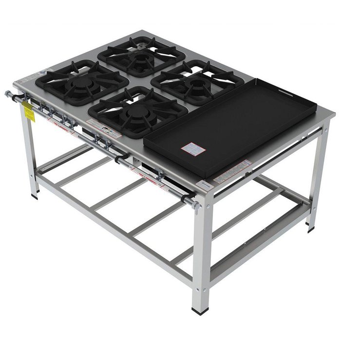 Fogão Industrial Inox Gastromaq 4 Bocas Mistas Encosto com Chapa FGI404EMCH Ideal para Cozinhas Industriais que precisam de um Fogão Inox Robusto e de qualidade, o Fogão Gastromaq é fabricado com mesa de perfil 100 mm estampada e sem emendas. Sua estrutura em aço inox, tubulação em alumínio escovado, queimadores em ferro fundido e grelha de 40 x 40 cm com 8 braços garante robustez sendo o equipamento ideal para a sua cozinha industrial!