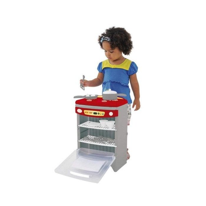 Fogão mini chef com som de cozimento e fritura, possui também 16 utensílios de cozinha como pratos, talheres, panela frigideira entre outros. O brinquedo estimula e desenvolve o aprendizado infantil através do faz de conta, a organização e a utilização dos utensílios da cozinha. Indicado para crianças a partir dos 3 anos de idade.