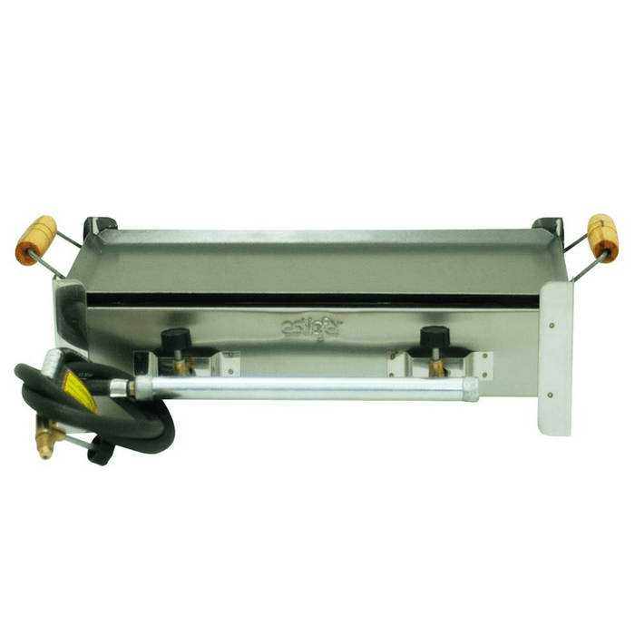 Observações:- Estrutura do Fogão em aço inox altamente resistente- Cada boca possui 1 registro para controlar as chamas- Possui mangueira e adaptador para botijões de 13 kg (Gás de Cozinha)- Possui chapa em aço carbono com alças de madeira.Marca: EstiloferModelo: E003Referência: E003Z