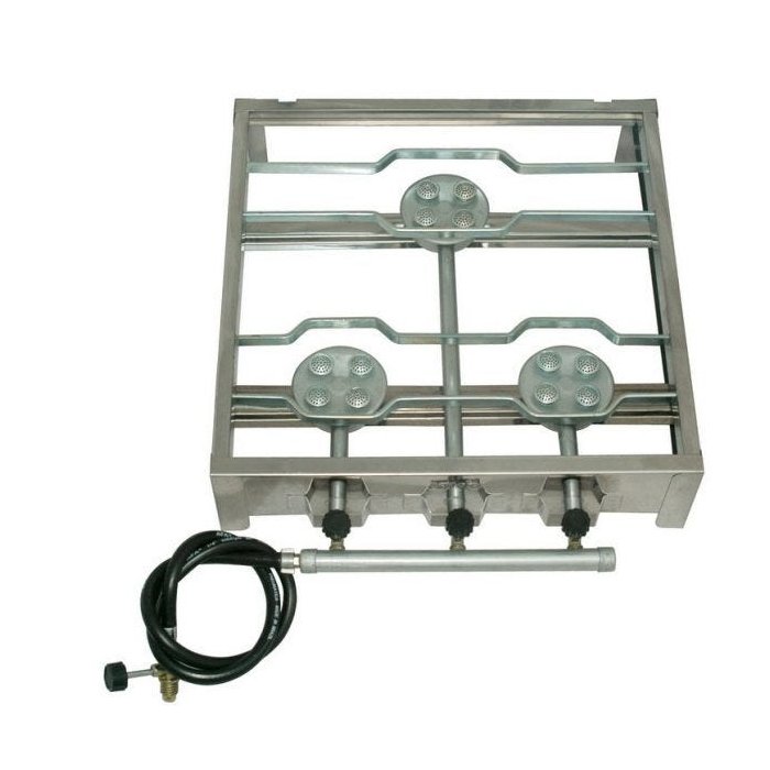 O Fogão Inox 3 Bocas Pequeno E015 – Estilofer é um fogão de alta pressão em aço inox, proporcionando resistência e durabilidade, queimadores de alta pressão, possibilitando cozimento rápido ou lento devido seus registros de precisão. Ideal para camping, residências, restaurantes, etc. Produto de qualidade com 30 anos de mercado.Dimensões do Produto Montado:Altura: 10 cmLargura: 42 cmProfundidade: 42 cmObservações:– Estrutura do Fogão em aço inox altamente resistente– Cada boca possui 1 registro para controlar as chamas– Possui mangueira e adaptador para botijões de 13 kg (Gás de Cozinha)– Possui registro na mangueira para ajustar a saída de gás para os queimadores, proporcionando segurança.Marca: EstiloferModelo: E015Referência: E015X