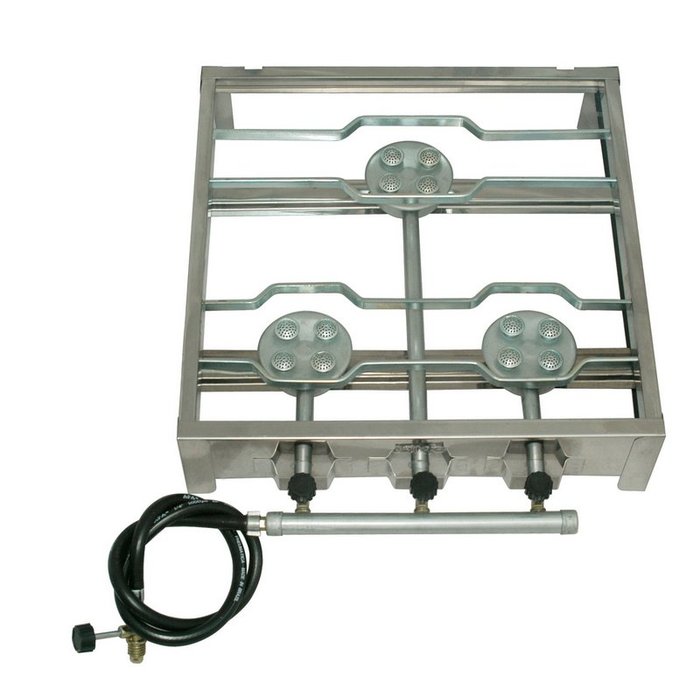 O Fogão Inox 3 Bocas Pequeno E015 - Estilofer é um fogão de alta pressão em aço inox, proporcionando resistência e durabilidade, queimadores de alta pressão, possibilitando cozimento rápido ou lento devido seus registros de precisão. Ideal para camping, residências, restaurantes, etc. Produto de qualidade com 30 anos de mercado.Dimensões do Produto Montado:Altura: 10 cmLargura: 42 cmProfundidade: 42 cm