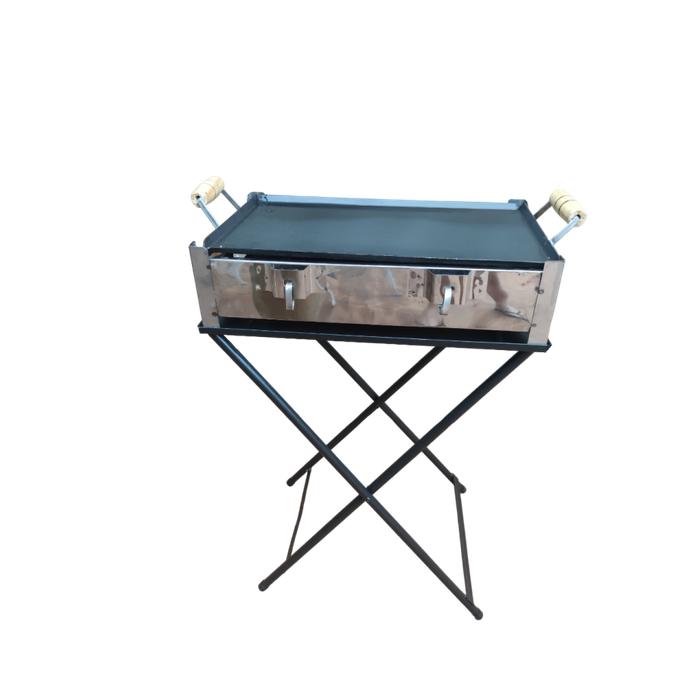 Fogão Inox a Álcool 2 Bocas com Chapa e Pé Mesa Dobrável