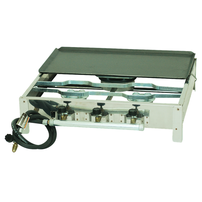 ->Contendo uma estrutura de aço inox,e sendo de alta pressão, este produto pode ser utilizado como fogão no uso de panelas, e também como chapeiro para quem gosta de produtos feitos na chapa. ->O fogão é constituído por 3 bocas -uma contendo 5 saídas para gás,e outras duas menores contendo 4 saídas para gás-, 1 registro distorcedor que será conectado ao botijão de gás p120, e uma mangueira de 90cm. ->A chapa que acompanha o produto tem as dimensões : 480mm de comprimento X 250mm de largura X 2mm espessura OBS : Assim como todo produto de aço ou ferro, este também está sujeito à oxidação, portanto é de suma importância mantê-lo limpo e livre de qualquer umidade ao fim de cada uso,estendendo,assim,a sua vida útil . ->É recomendado utilizar somente a fogo baixo,pois ,por se tratar de um produto de alta pressão,a chama intensa pode provocar danos não somente no fogão,como também no alimento a ser preparado.