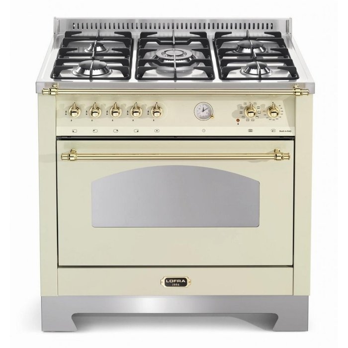 Fogão RBIG96MFT / Ci LOFRA Seu requintado design vintage é formado por puxadores e botões em robusto latão, relógio analógico com 4 funções, porta do forno com vidro em curva, rodapé em aço inox escovado igual ao da mesa e brasão LOFRA em latão maciço. Equipado com avançados recursos de preparo na mesa e nos fornos, um fogão Dolcevita LOFRA fará você reviver deliciosos momentos gastronômicos. Queimadores profissionais Sabaf Série III de alta tecnologia, que inclui a potente chama tripla de 4.000 W, proporcionam calor sob medida para suas grandes aventuras culinárias. Desfrute de assados com resultados profissionais em seu amplo forno ventilado de 102 litros, com 10 funções e 4 zonas de aquecimento em diferentes posições para um calor homogêneo em todas as prateleiras. Versátil, ele prepara pratos doces e salgados juntos sem trocar aromas e sabores, aquece rapidamente dispensando pré aquecimento e oferece temperaturas de 60º C à 250º C para o preparo de todos os tipos de receitas. Com o potente grill infravermelho com controle de temperatura prepare facilmente deliciosos churrascos, suculentos grelhados e apetitosos gratinados, de forma rápida e divertida. A LOFRA utiliza componentes, matérias primas e processos produtivos com os mais altos padrões de qualidade, que proporcionam a reconhecida longa durabilidade de seus fogões. O aço 304 BA utilizado é considerado o melhor do mundo por sua excepcional resistência à corrosão e manchas, e que recebe escovamento não poroso que facilita sua limpeza. Os fogões LOFRA podem ser utilizados embutidos sem necessidade de frestas de ventilação junto aos móveis, com ou sem os seus pés, para uma perfeita integração com os móveis de sua cozinha. Descubra e relembre com um fogão Dolcevita LOFRA todos os deliciosos sabores da grande arte culinária! Performance 1 Queimador triplo de 4.000 W: ideal para cozimentos ultra rápidos 4 Novos queimadores profissionais Sabaf Serie III: performance excepcional sem equivalentes, alta eficiência com baixíssimas emissões. Forno ventilado multifunções: oferece 10 versáteis funções que tornam mais rápido e fácil preparar todos os tipos de alimentos. Amplo forno de 102 litros: com dimensões que permitem o preparo de grandes receitas. Medidas úteis de 69,5 cm X 29,5 cm X 37,5 cm ( L x A x P ). Especificações Cor: Marfim. Tensão: 220 V Dimensões com embalagem: Peso:80.00 Kg Profundidade:685 mm Altura:997 mm Largura:987 mm Dimensões sem embalagem: Peso:75.00 Kg Profundidade:600 mm Altura:850 a 905 mm Largura:900 mm