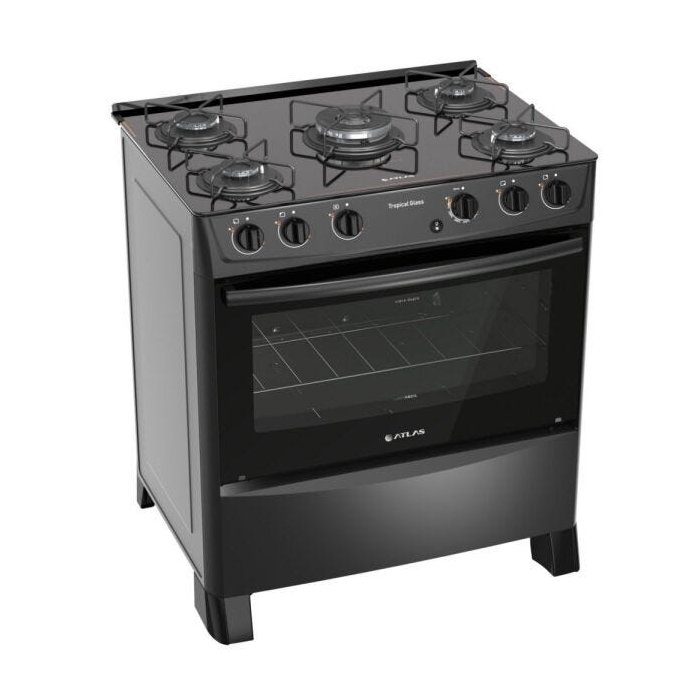 Fogão de Piso Atlas Tropical Glass 5 Bocas Mesa de Vidro Preto Bivolt 300000422