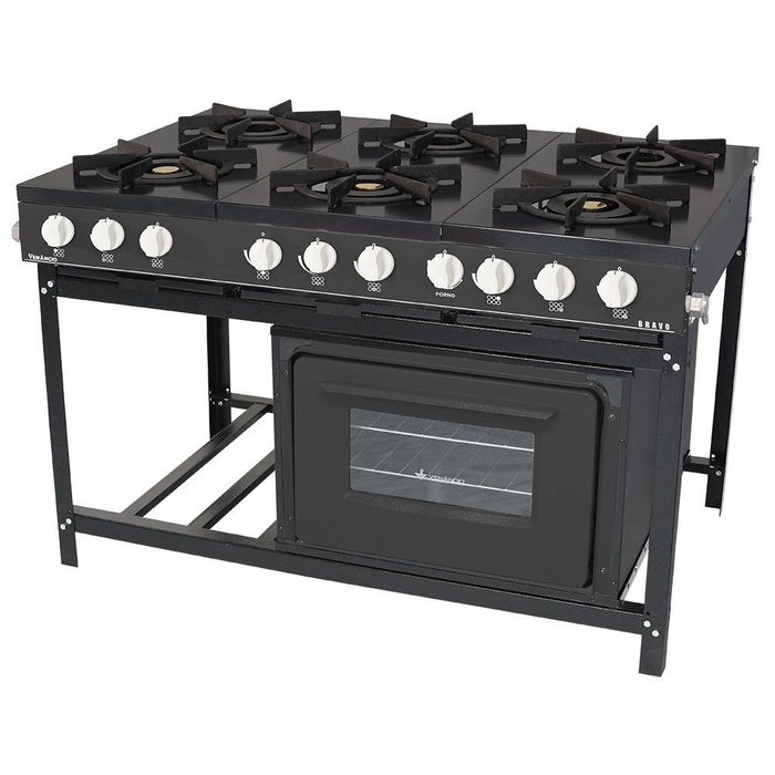 Fogão Profissional Venâncio 6 Bocas Linha Bravo com Forno Preto BR6BFPR