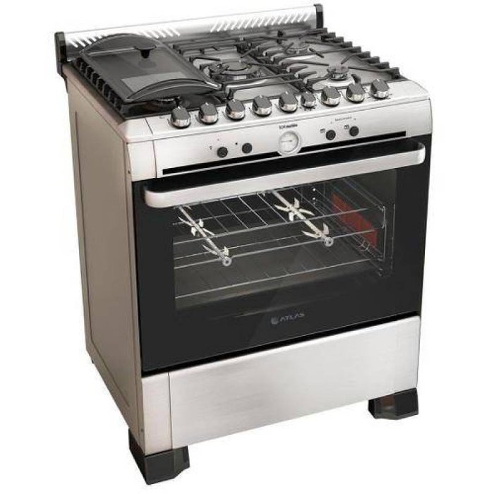 Itens Inclusos: 01 Fogão Top Machine 5 Bocas Com Timer 2 Espetos Giratório Inox Atlas