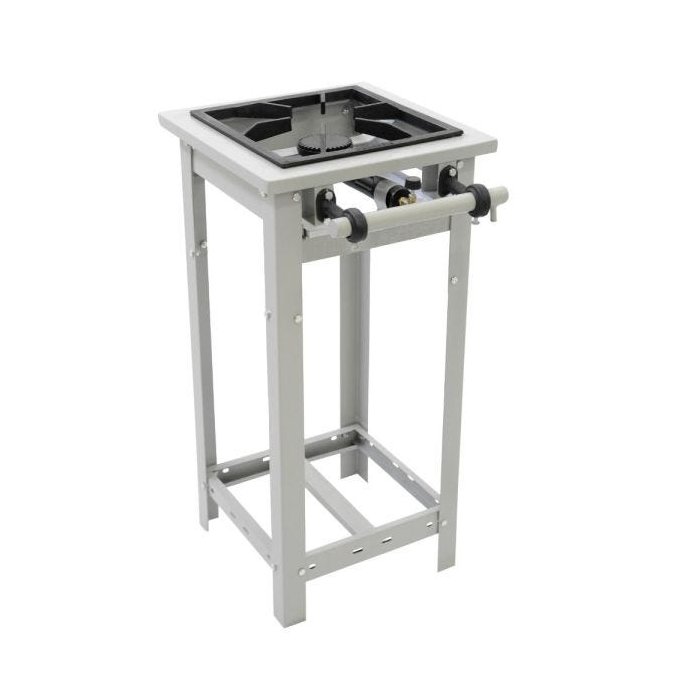 Fogão Venâncio a Gás Alta Pressão Vulcano 1 Boca com Pé O Fogão Vulcano 1 Boca com Pé conta com corpo e mesa de aço carbono super resistente em pintura a pó eletrostática, com base fosfatizada. Contém grelhas e queimadores em ferro fundido com tubo distribuidor em pintura a pó eletrostática com base fosfatizada, montado com torneira ap de 1/8" por queimador. Com altura padrão de 80cm com pé, o queimador do Fogão Vulcano é simples de 90mm de diâmetro, de fácil encaixe para limpeza e manutenção e fácil regulagem de entrada de oxigênio. Acompanha no Fogão mangueira montada com conjunto de niple borboleta e torneira 5/16" para conexão de botijão P13. Informações Técnicas: Modelo: Vulcano 1 Boca com Pé Corpo e mesa de aço carbono super resistente em pintura a pó eletrostática com base fosfatizada Grelhas e queimadores em ferro fundido Tubo distribuidor em pintura a pó eletrostática com base fosfatizada montado com torneira AP de 1/8" Totalmente desmontável para facilitar o transporte e armazenagem Queimador simples de 90mm de diâmetro, fácil encaixe e remoção para limpeza e manutenção Fácil regulagem de entrada de oxigênio Acompanha mangueira montada com conjunto de niple borboleta e torneira 5/16" para conectar botijão P13 Medidas do Fogão Altura: 800mm Largura: 390mm Profundidade: 480mm