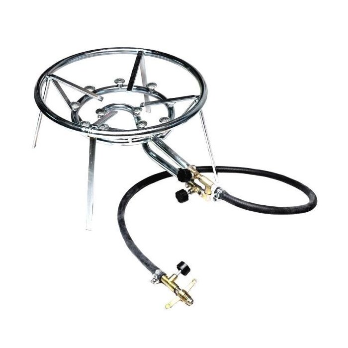 Fogareiro 12 caulins alta pressão ideal para uso em campings no lazer com os amigos e familia, e também para preparo de cervejas artesanais. Por possuir 12 caulins com chamas em alta pressão seu aquecimento é muito eficiente, rápido e seguro. Possui dois registros reguladores e mangueira de 90 cm que acompanham o produto, sua base reforçada suporta tachos, caldeirões, discos e panelas de diversos pesos.