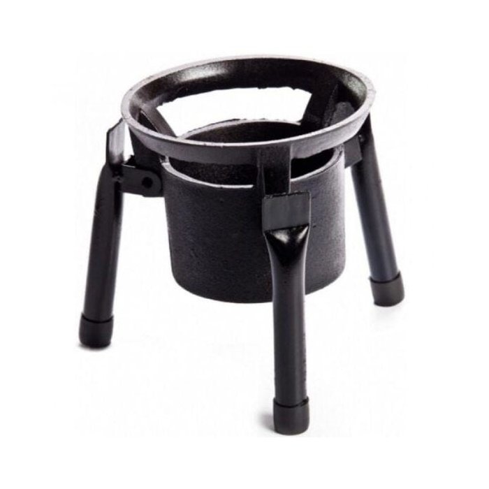 Fogareiro com pés, á álcool, utilizado para aquecer com capacidade para até 500ml. Fabricado em ferro fundido e acabamento na cor preta.