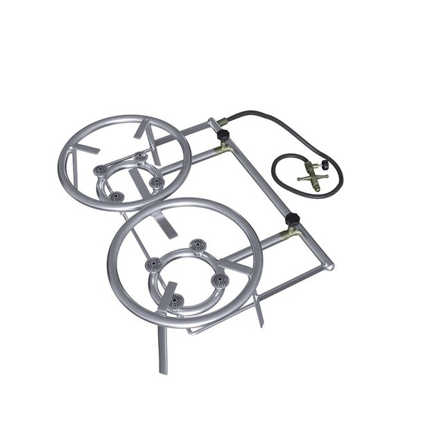Produto indicado para o preparo de frituras, fervuras, e muito utilizado por motoristas e caminhoneiros. Fogareiro duas bocas possui 02 registros independentes, comporta desde as panelas menores a discos de arado maiores.