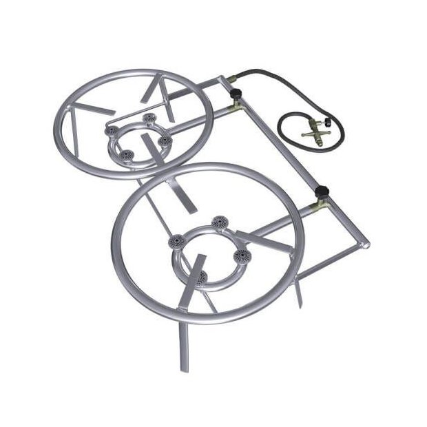 Produto indicado para o preparo de frituras, fervuras, e muito utilizado por motoristas e caminhoneiros. Fogareiro duas bocas possui 02 registros independentes, comporta desde as panelas menores a discos de arado maiores. Ideal para acampamentos e lazer.