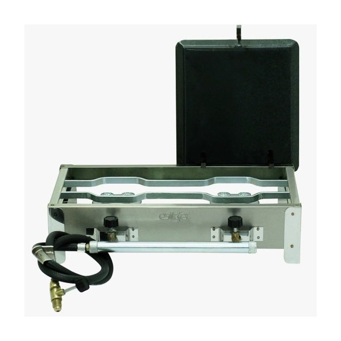 Fogão Fogareiro Inox 2 Bocas caixa em inox, COM CHAPA para eliminar todo tipo bagunça, sujeira em sua cozinha, Camping, casa, Caminhão