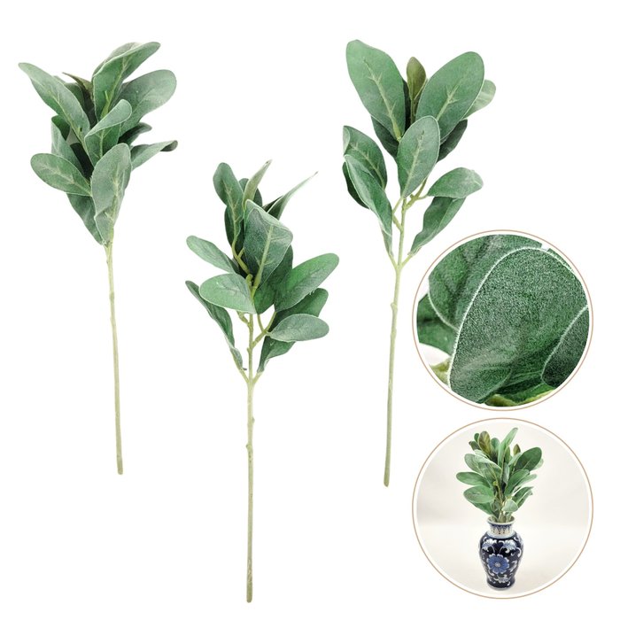 3 Hastes de Folha De Orelha De Cordeiro Flocada (aproximadamente 16 folhas cada)