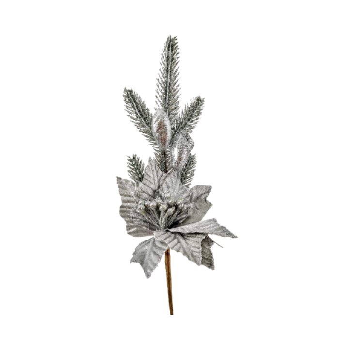Folhagem Prata De Natal 38x8x12cm Haste Poinsettia Prata