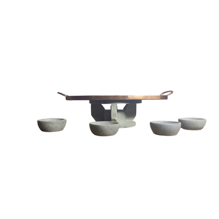 Fondue Retangular 30 x 20 cm em Pedra Sabão + 4 Tigelas para Molho