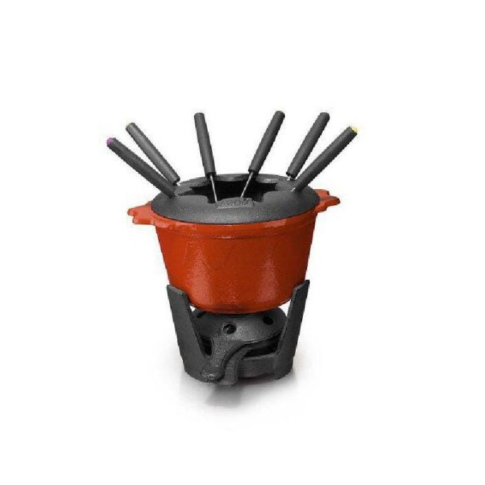 Fondue Vermelho De Ferro Fundido 6 Espetos 1,2 Litros