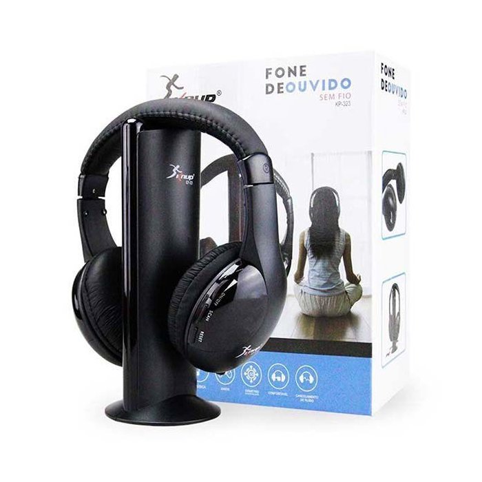 O fone de ouvido Knup KP-323, é resistente a interferências, sinal forte, performance inigualável e distância efetiva de mais de 6 metros através de barreiras e paredes. Fone sem fio para Recepção sem fio de equipamentos como DVD, Computador, TV, Aparelho de Som, Vídeo Game, etc. Possui um microfone de alta sensibilidade para que nenhum fio fique atrapalhando sua conversa No caso de falta de pilhas, seu fone também pode ser usado com o fio que acompanha o kit. Descrição do Produto: Fone de ouvido sem fio 5 em 1 Model KP-323. Para conseguir a melhor recepção espalhe bem o cabo de áudio do emissor (o cabo de áudio do emissor também pode ser utilizado como antena). Características: - Receber Radio FM - Conversar Sem Fio - Fone com Fio - Desligar - Função de fone de ouvido / sem fio wireless; sim Bluetooth; não Especificações Técnicas: Emissor: - Frequência: 87,5 + -0.5MHz - Modo de Modulação: FM - Alcance: 30 (sem interferência) - Alimentação: 2 pilhas AAA ou 4.5V DC Receptor: - Faixa de Frequência: 84 - 108 MHz - Modo de Recepção: FM - Distorção: 2% - Alimentação: 2 pilhas AAA Itens Inclusos: - Emissor: 1 unidade - Receptor (fone de ouvido): 1 unidade - Manual: 1 unidade - Cabo de Audio: 1 unidade - Adaptador de cabo de audio: 1 unidade