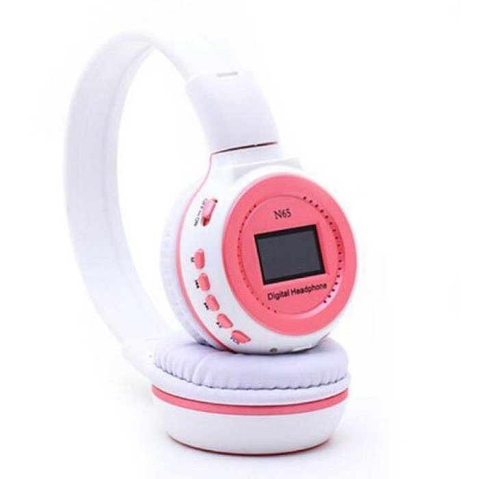 Fone de Ouvido Bluetooth com Visor Sd Card P2 Fm N65 Rosa e Branco
