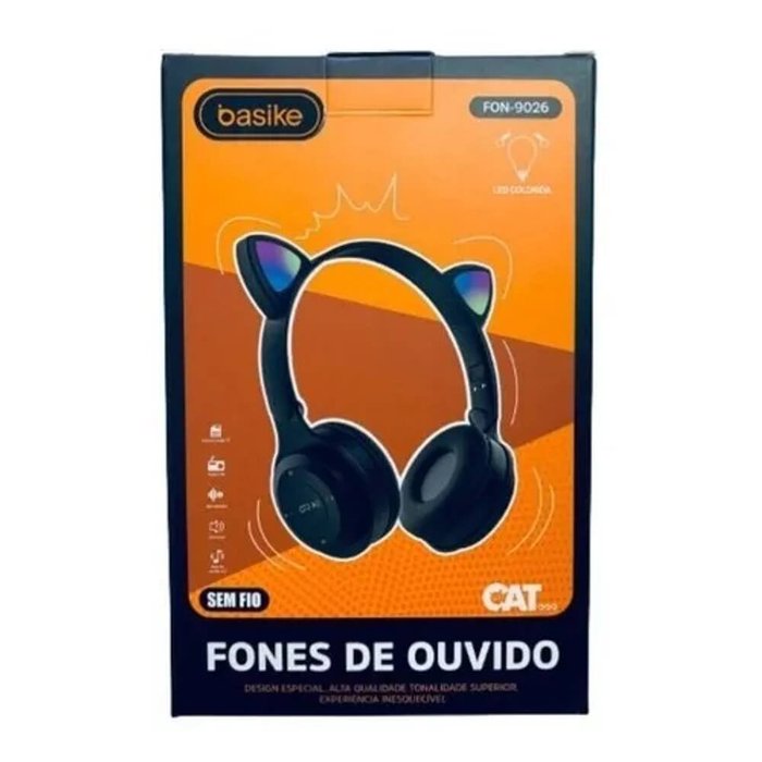 Fone De Ouvido Bluetooth Sem Fio Orelha De Gato Basike 9026. disponivel na cor preta